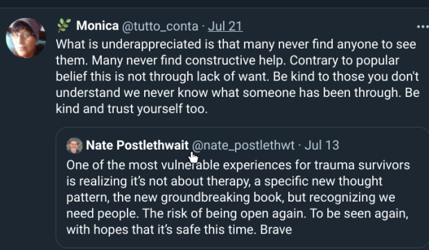 Once the microbiome becomes riddled with fear the micro-organisms take on the “signature” of the trauma and the story is held in the body with some stubbornness in this way. That is an intricate part of what PTS is for me.